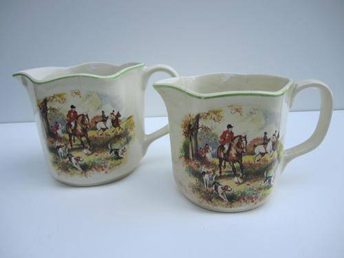 Absolutely Gorgeous! Two (Made in England) Nelson Ware Elijah Cotton Ltd. Jugs depicting the English Country Side Fox Hunt! What a find!