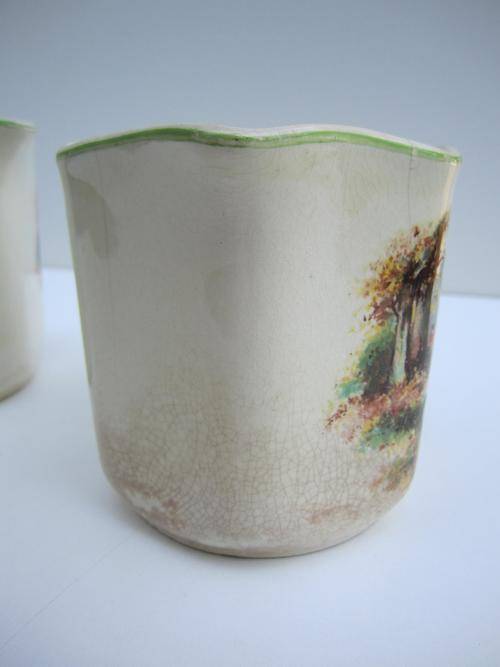Both have age related wear and tear. The one jug has a small chip on the rim, but overall they are in good condition.