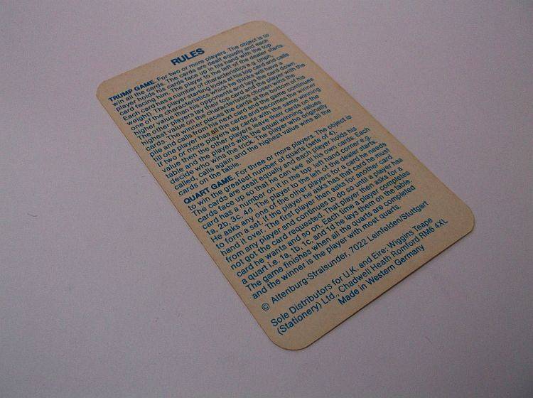 Born in the 1960`s or 1970`s ? You will love this VINTAGE TRUMPS card game ...Good condition for age , not all covers are perfect but all cards are in fair to good condition , no tears , bends or writing on them