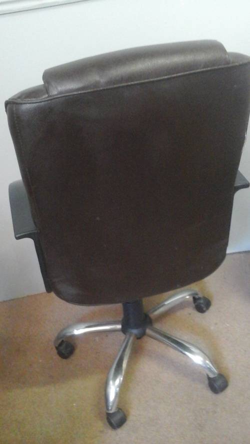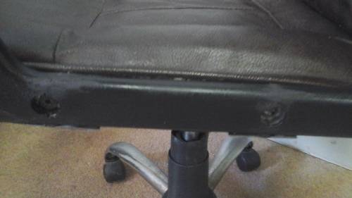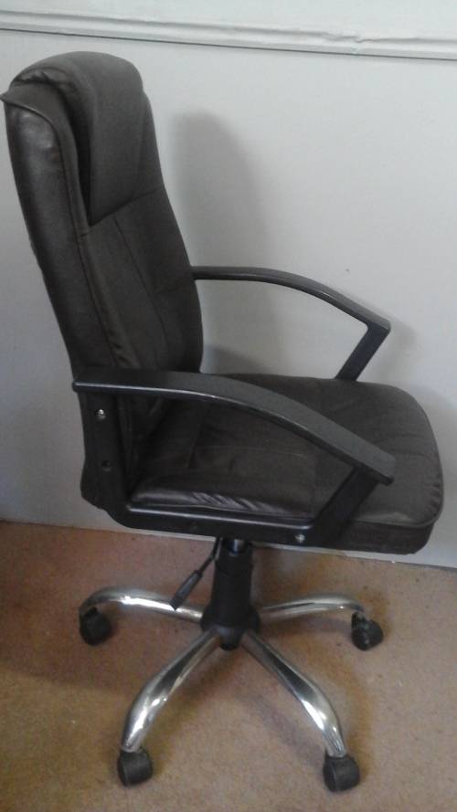THE FRAME IS MADE FROM STEEL. THE ARM RESTS ARE MADE FROM PLASTIC. THE BACK REST AND THE SEAT HAS A COMFY BLACK PLEATHER FABRIC CUSHIONING.