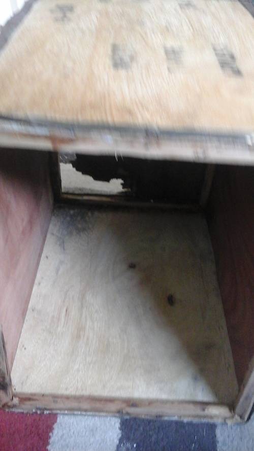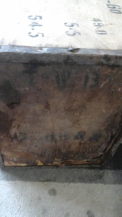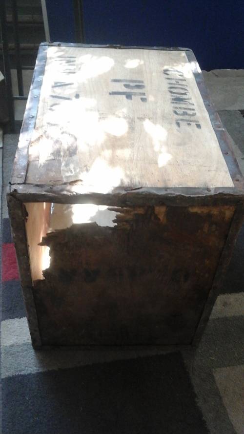 IT IS DISCOLORED. THE STEEL IS RUSTED AMD THE WOOD IS TATTY AND WORN IN PLACES. THE ONE SIDES HAS A WHOLE IN IT OVERALL IT IS IN REASONABLE CONDITION.