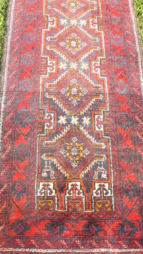 An absolutely stunning Persian carpet runner in perfect condition. This wonderful piece has it's full pile with no wear at all, even the trimmings are in perfect condition. In deep reds, maroons ,blues, white and orange this truly wonderful item is a full 2.3 meters in length and is 670cm broad . Don't miss out on the opportunity to own this spectacular item.