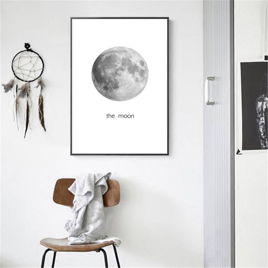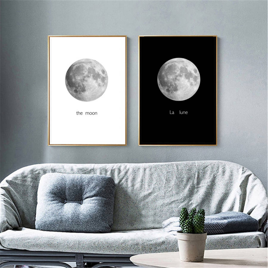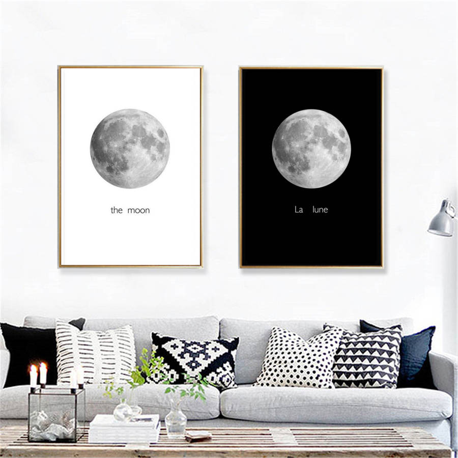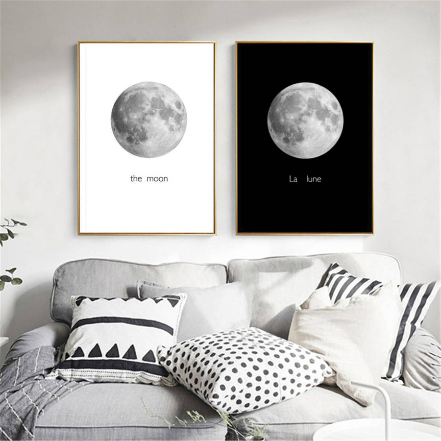 Abstract Black&White Moon Canvas Paintings Print Home Room Wall Picture Art Decor