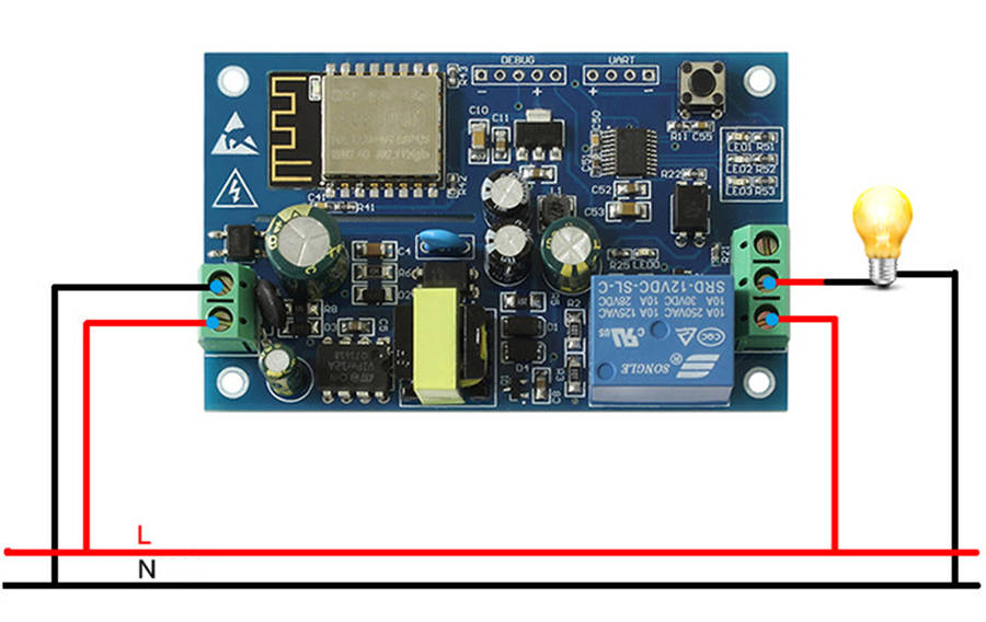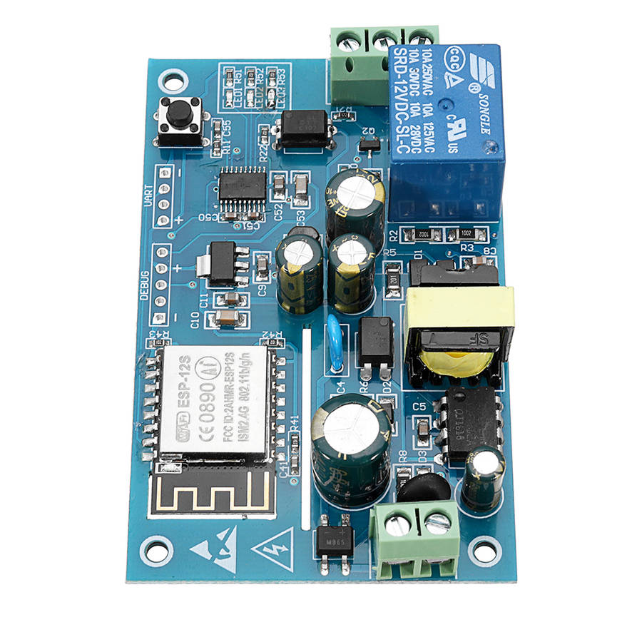 1. on board high quality MCU and ESP8266 WIFI module 2. two working mode: Mode 1: cellphone carry on wifi module directly Mode 2: cellphone and wifi module carry on router together 3. Transmission distance: (1) the open environment, when when mobile phone is carrying on the WIFI module, maximum transmission distance is 100 m (2) when the WiFi module and cell phone carrying on the router at the same time the signal transmission distance depends on router signal 4. Use the Smartconfig technology to complete the configuration of the account and password of the ESP8266 WIFI module on the mobile APP. The configured account and password will be memorized after power off 5. The power supply IC of ST original factory can be directly connected with the municipal power, and it has wide voltage input range: AC 85V-264V, stable dc voltage output, ensuring stable operation of the control part 6. The board contains 220V, 10A/250VAC 10A/30VDC Songle original relay, which can continuously absorb 100,000 times, with the protection of diode current and short response time. 7. PCB material and manufacturing process meets the standards of Rohs . 8. On board relay LED indicator , mode option and working statue LED indicator 9. Reserved UART debug interface and MCU download port for program 10. Board size: 80*50mm