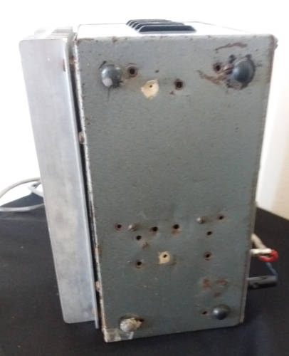 Pre-owned - AC to DC step-down transformer 220AC to 15 & 30V with analogue meters, mounted in a steel casing with a heat sink across the back.