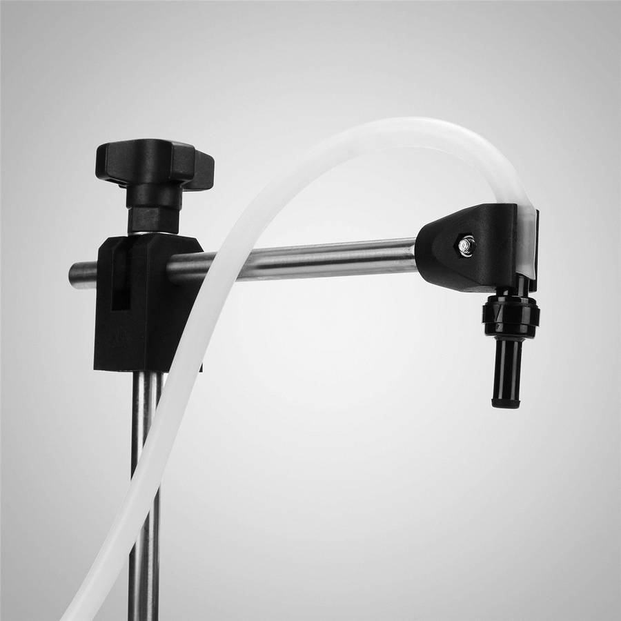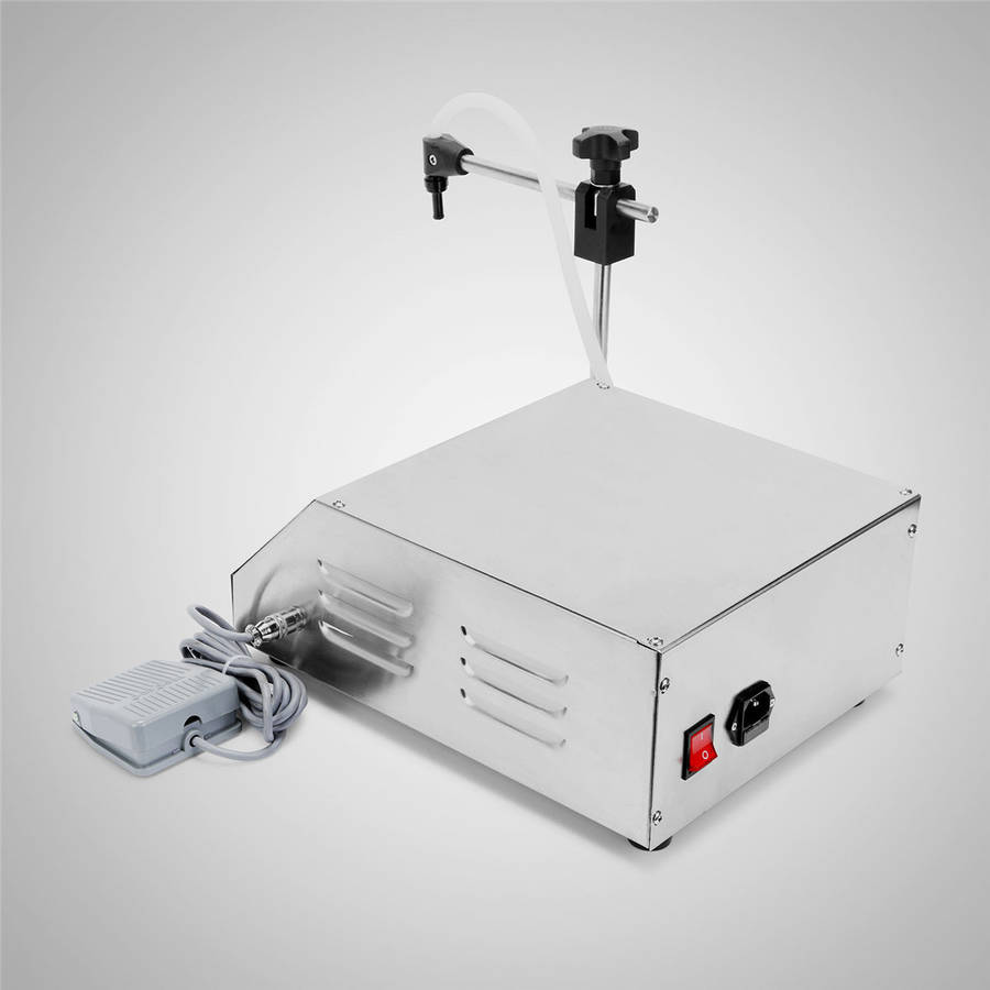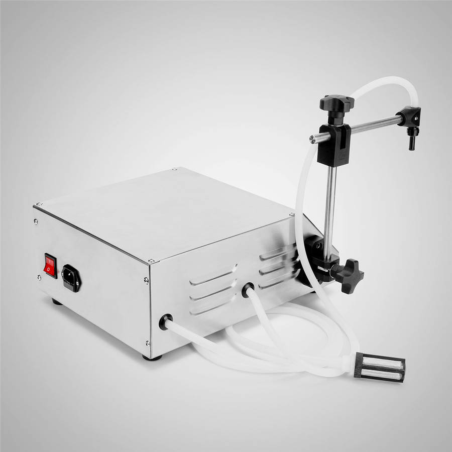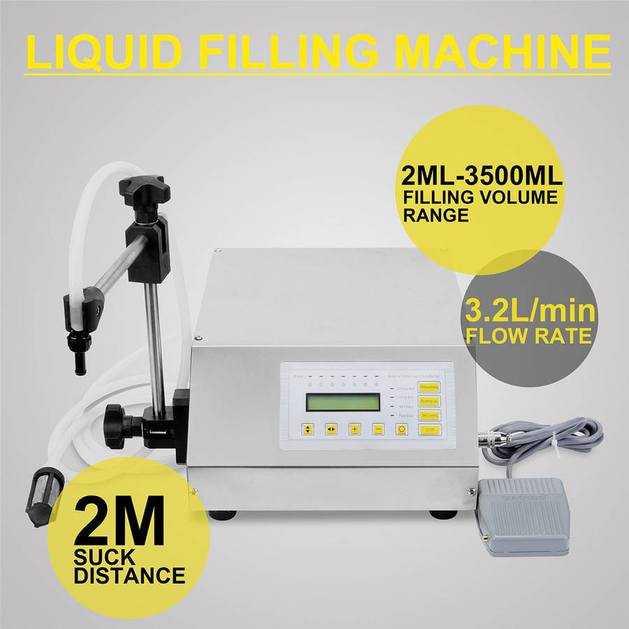 Package weight: 2.35 kg Specification: Voltage:AC180V-260V Power:300W Max Flow Rate:3.2L/min Max Absorption Distance:2m Repeat Error:<0.5% Package Dimension:400×380×200(mm) Machine Weight:5.5kg / 12.1Lbs Filling Volume Range:2ml-3500ml Anti-dripping Function:Available Memory Function without Electricity:Available Machine Size:350 X 270 X 150(mm) Diameter of Filling Nozzle:Φ 8mm Suitable Soft Tube:17# (interior diameter: 6.4mm, thickness: 1.6mm, max pressure0.24Mp) Note:Different liquid needs to choose different material of tube. The tube provided by us is silicone tube. Package included: - 1xWater Liquid Filling Machine - 1x Power cord - 1x Pedal Switch - 1x Filling Stand - 1x Filter - 1x Filling Nozzle - 1x Screwdriver - 1x Inner hexagonal wrench - 1x Manual Book - 1x Guarantee receipt More details: Feature: This Updated GFK series numerical control liquid filling machine uses micro-computer to control the mini-pump on filling time and the rotation rate of electric motor so that the machine can fill the liquid fluently and at high accuracy. Separated with the electric motor,the pump is made of a variety of anti-corrosion imported material. There is no mechanical metal part or abrasion inside the pump. This numerical control liquid filling machine is compact and portable. The casing uses stainless steel so it is durable and easy to clean. The machine has a self-prime pump that can suck in the liquid from your container and then output via the nozzle. It can be used to fill many different types of clear thin liquid,including water, olive oil, fuel, drinks, vinegar, milk etc. Liquid suitable: low viscous liquid like water, wine, solutions etc. Liquid unsuitable: very thick liquid (sauce,detergent etc), or liquid containing small particles. The tubes are made of silicone gel and the pump head is made of PVC plastic material so it can endure mild acid/alkaline solutions. The machine has a control front panel and digital display. You can easily enter your parameters by pressing the buttons on the control panel and the parameters will show in the LCD screen. The filling volume can be controlled via the filling time and speed parameters which give you much flexibility. How to use: 1. Installation Take the plastic filling nozzle out and install it in the feeding tube. (Notice the triangle head connects the discharge tube). Take out the filling-head stand and install it on the left of the machines as photo3 shows. Put the filling head in the clip and tighten it by socket wrench. Connect the pedal switch with machine, and put the tube with filter below the liquid level inside the storage rank. The position of tank should be lower than the machine. Start to test the machine after all is ready. 2. Turn on Switch on the machine, the LCD screen will show welcome words and the machine will be under standby status after 3 seconds. As photo4 shows, the screen shows filling quantity at the top left corner, filling speed at bottom left corner, once filling time at the top right corner, interval time at bottom right corner. 3. Adjustment When the machine is under working status, other buttons can't work. You can adjust the parameter after press the on/off button to let the machine under pause status. 4. Measurement Proofreading This procedure is to check out if there is water coming out from the nozzle. By adjusting the filling time and speed to meet the requirement. The normal work can be carried out after the measurement proofreading is done. Kindly note: The manufacturer will not be responsible for any damage due to improper operation. This kind of risk should be taken by the users. Strictly abiding by the manual book is a part of operation requirement.