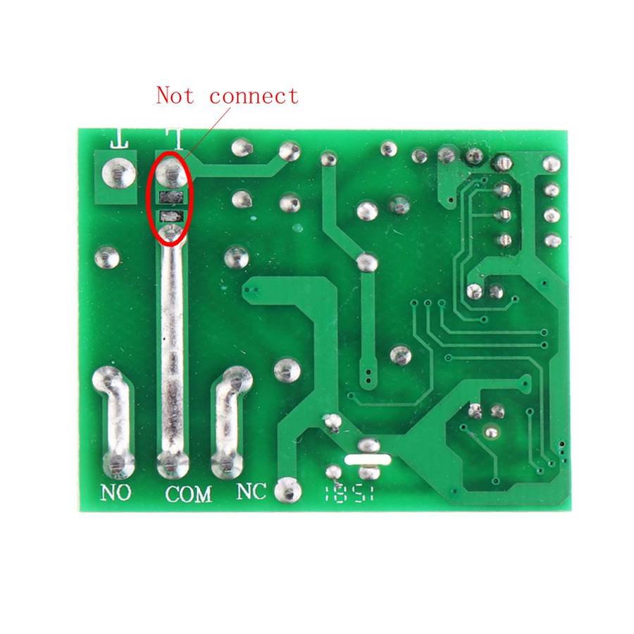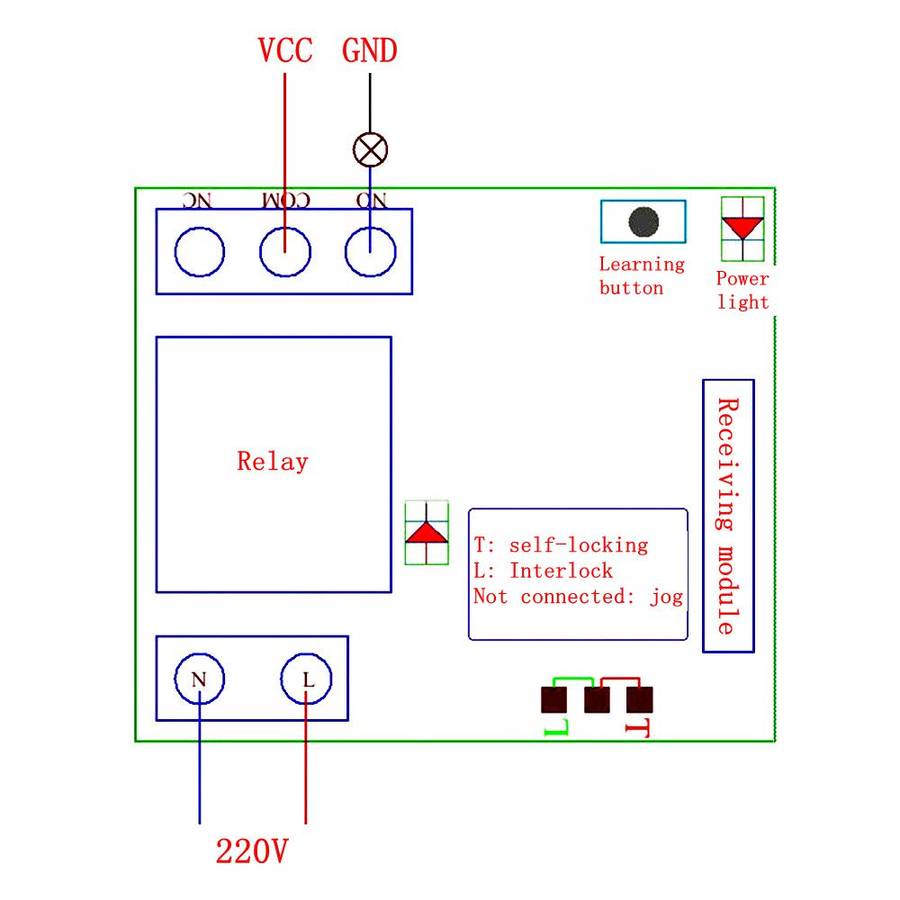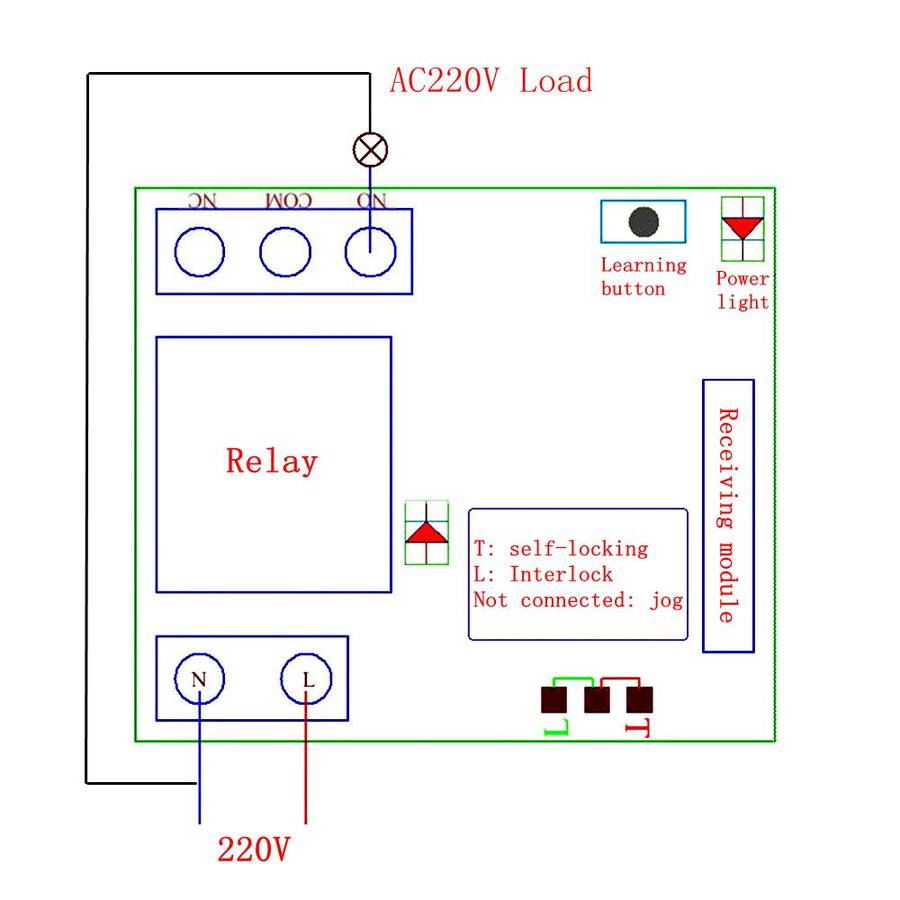 Overview: Wide voltage single controller. Learning function, single-chip decoding is convenient for customers to support a variety of remote controls. The free setting of the three working modes is convenient for the user to use different control functions, the input voltage range is wide, the output is charged and the output switching signal is more convenient for the user to use in different occasions, which increases the application flexibility of the product. It is used in the field of lighting, motor shut-off, security industry machine wireless remote control lights. Technical indicators: Working voltage: AC220V Operating frequency: 315MHz / 433 MHz Standby current: 10mA Load: less than 1000 watts Working mode: self-locking, jogging, interlocking Shell size: 98*44*27.5mm PCB size: 67*38*16.5mm The meaning of self-locking/interlocking/jogging: Interlock (short L): Press the corresponding button of the remote control, the corresponding relay is turned on, and then press another remote control button; the relay is disconnected. Non-lock, jog (empty): press the remote control button, the corresponding relay is turned on, release the remote control button; the corresponding relay is disconnected. Self-locking (short T): Press the remote control button once, the relay is turned on, press the remote control button again, the relay is disconnected. Instructions: (1) Learning code First press and hold the learning button, the indicator light is off, indicating that the learning state is entered; release the learning button, press and hold the remote control button that needs to be learned, the indicator light flashes five times and then lights up, indicating that the learning is successful. ★Note: This controller can learn 20 remote codes of fixed code/learning code, and the remote control will remove the earliest learned remote control if exceed. (1) Clearing code Press and hold the learning button, the indicator light will turn from off to off, then return to long light, indicating that the clearing is successful. Transmitter Feature: Working voltage: 6V (two CR2016 button batteries) Working frequency: 315MHZ/433MHZ Coding format: learning code (EV1527 compatible chip) Remote control distance: 50 meters (no interference, depending on the specific environment) Package includes: 1 x Wireless Remote Control Switch 1 x Transmitter ![]() ![]() ![]() ![]() ![]() ![]() ![]() ![]() ![]() |
