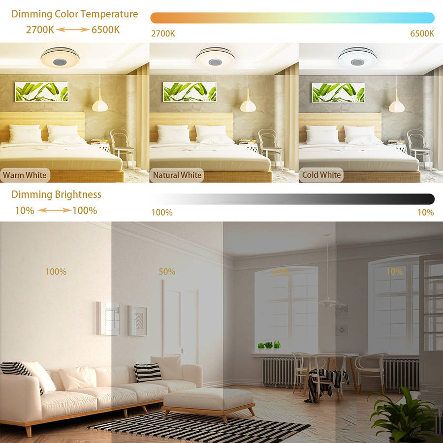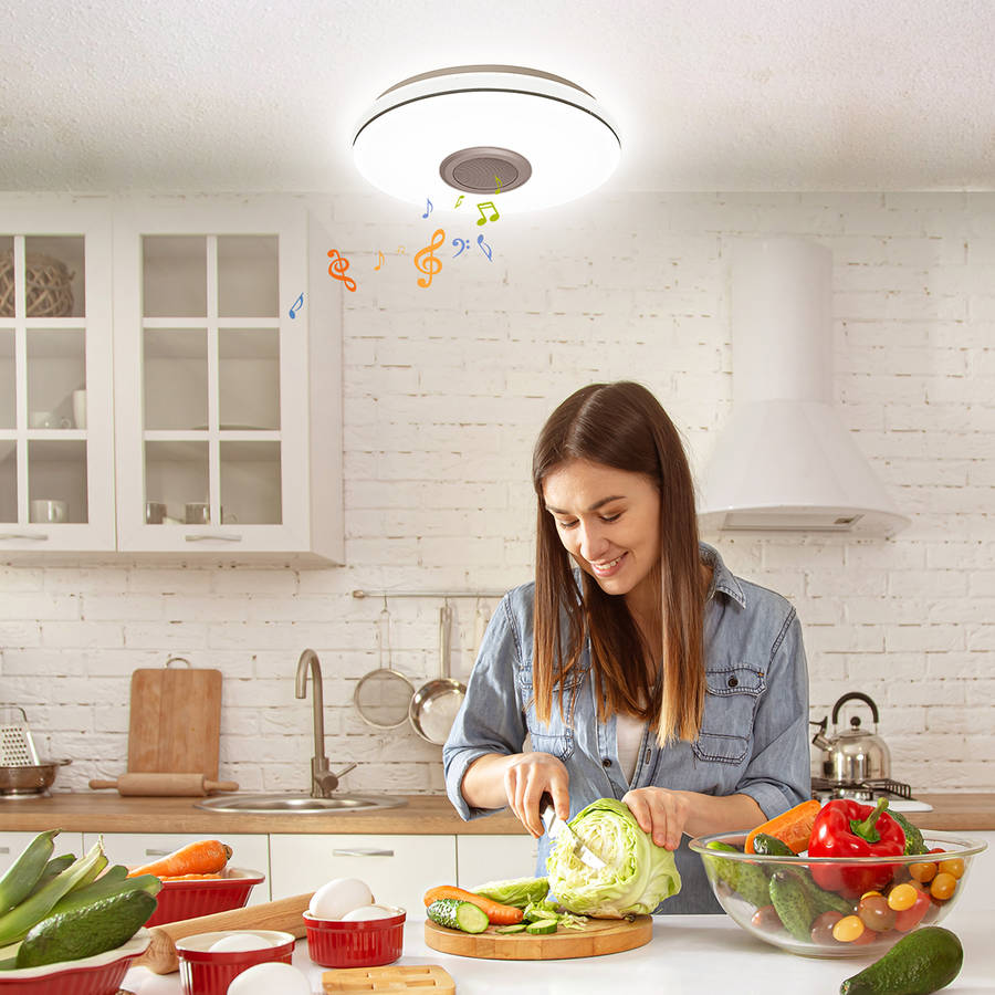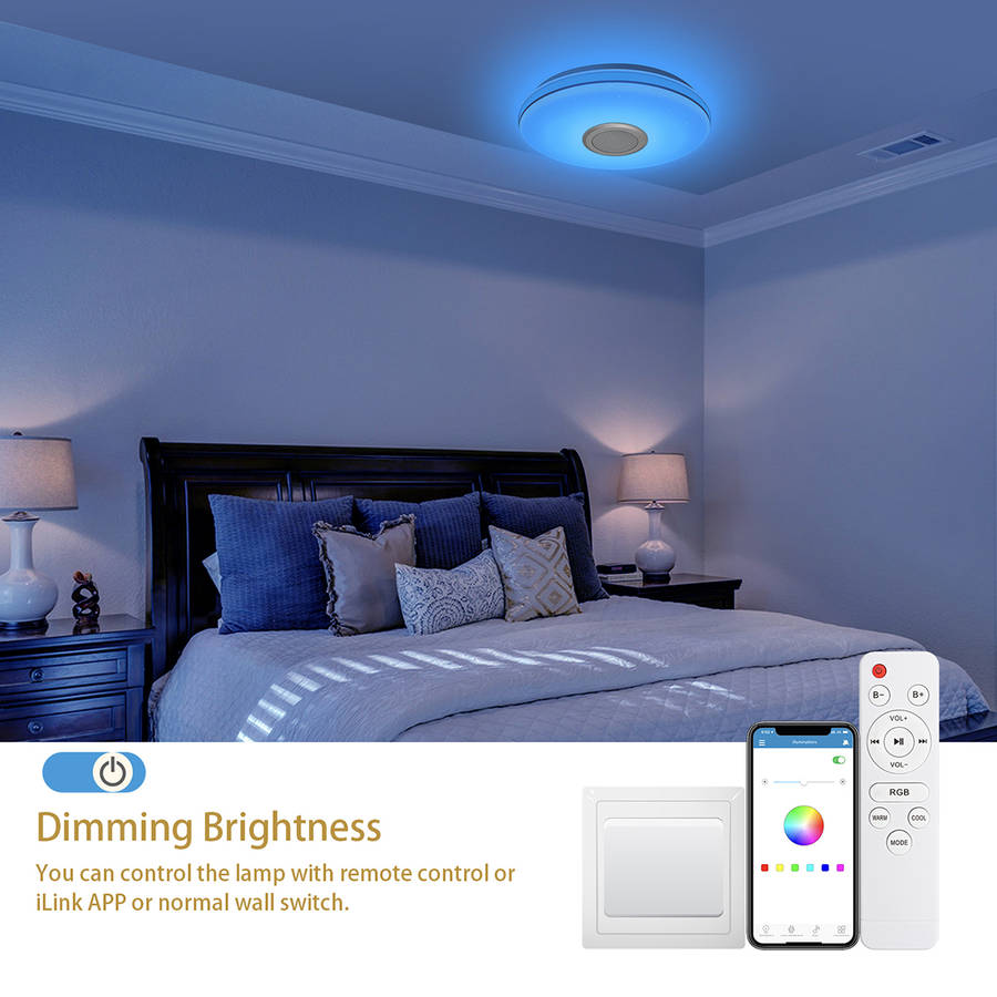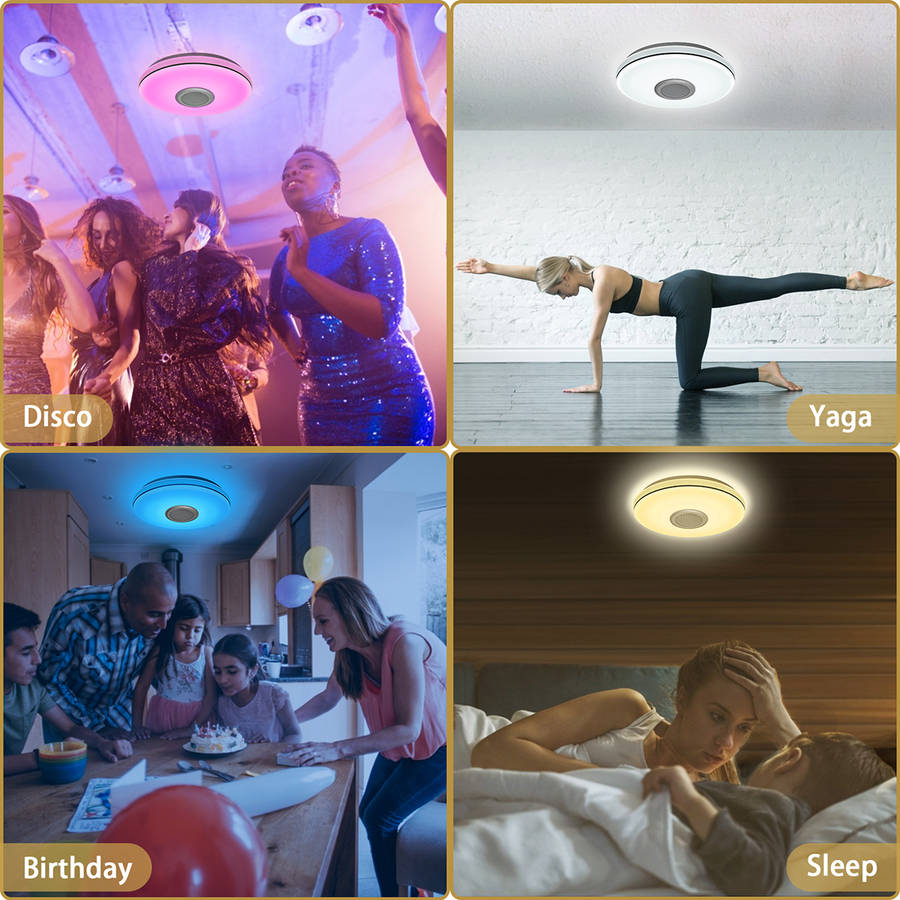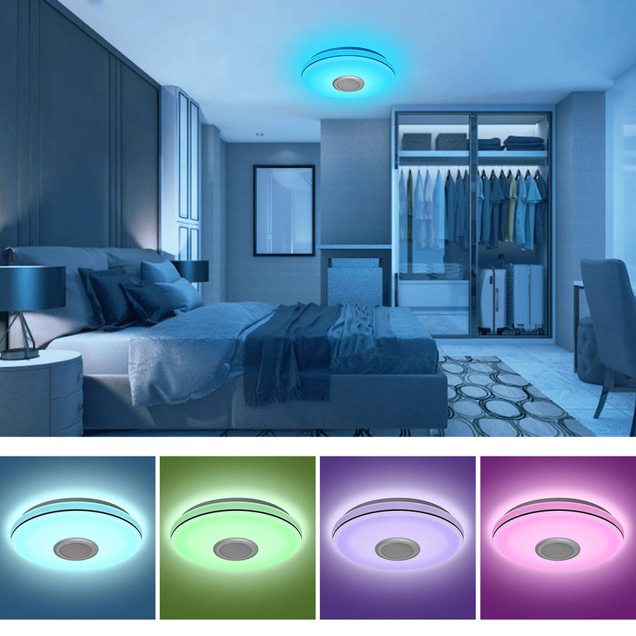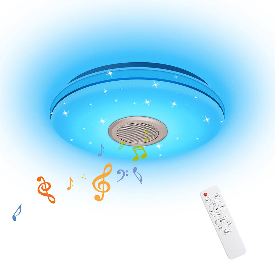 Bluetooth Ceiling Light RGB Ceiling Lamp 24W LED Ceiling Light Dimmable with Remote Control and Speaker 3000LM, IP54 Waterproof for Bedroom Children's Room Living Room 30CM.