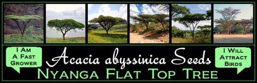 Acacia is a large genus, in the Fabaceae family, that contains over 1200 species of trees and shrubs from warm climates. Some are deciduous but most are evergreen. Over 700 species are native to Australia. There are 40 species, subspecies and varieties of Acacia indigenous to South Africa. They range from low-growing shrubs to tall trees and many have been introduced to other countries for economic and ornamental purposes. Acacias are also common in tropical and subtropical Africa; most African species are characterized by vicious spines and referred to as ‘thorn trees’. The name Acacia is derived from "akis" meaning a point or barb. The flowers, ranging from deep golden yellow to cream or white, and crowded into globular heads or cylindrical spikes, are often fragrant and produce abundant, bee-attracting pollen. The fruit of Acacias are either round or flattened pods. They do well in most parts of South Africa, and resist all but the severest frosts. Many of them make suitable bonsai candidates and will grow well in pots. The hard coated seeds remain viable for up to 30 years. They should be treated by heating and soaking for germination in spring. In cultivation many species are fast-growing but short-lived (10-15 years). They do best in full sun and well-drained soil. Some will take part-shade. Prune to shape after their flowers have fallen. Acacia abyssinica previously known as Acacia aethiopica and commonly known as Nyanga Flat Top Tree is an extremely fast growing deciduous tree with a spreading crown shape that can grow up to 16 meters in height. From spring to summer it bears beautiful pompom shaped white flowers which are visited by insects which attract insectivorous birds to the garden. This tree is also regularly visited by butterflies. The Nyanga Flat-Top Tree is drought and frost resistant once established and prefers a sunny spot in the garden. The bid amount is for 1 Seed - Germination Instructions will be sent to your email.