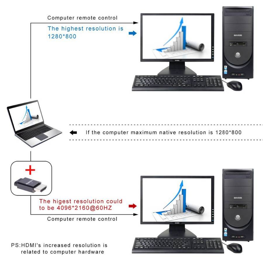 1. It can simulate up to 4K resolution, 3840 * 2160 resolution. 2. Small size, low power consumption, no heating. 3. Support plug and play, hot plug. 4. No need to drive, support all systems.
