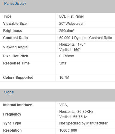 The V203H 20" Widescreen LCD Monitor (EPEAT) from Acer is an environmentally-friendly widescreen display that provides clear, high-resolution images. With its vivid 50,000:1 contrast ratio, wide 170° horizontal viewing angles, and resolution support up to 1600 x 900, the monitor is excellent for watching movies, playing games, or editing pictures.