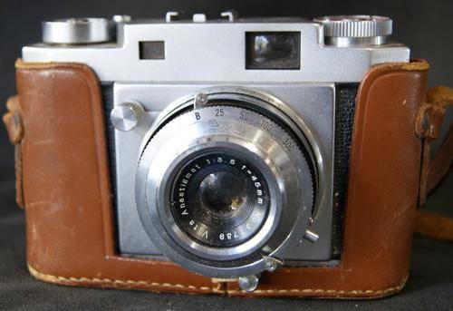 The Acon 35 is a 35 mm rangefinder camera made by Ars Optical in Japan in about 1956. Camera is in great condition and includes an original fitted leather case. Untested!