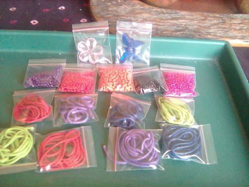 Acrylic bead mix,wax cord,pendants and seedbeads..bid on 80 pkts for all on photo