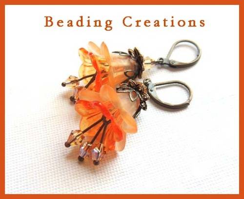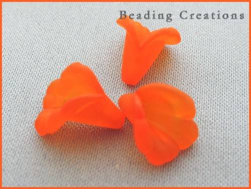 ACRYLIC - FROSTED -BRIGHT ORANGE - CALLA LILLY FLOWER - BEADS/BEAD CAPS - 10mm