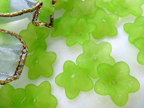 ACRYLIC - FROSTED - GREEN - BALLOON FLOWER - BEADS/BEAD CAPS - 17MM