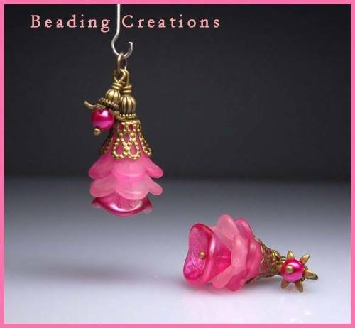 ACRYLIC - FROSTED - HOT PINK - LILLY OF THE VALLEY - FLOWER - BEADS/BEAD CAPS - 7x10mm