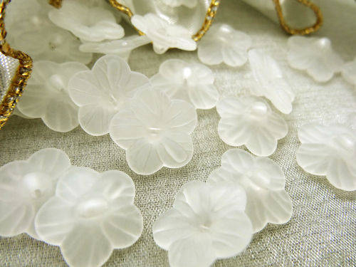 ACRYLIC - FROSTED - WHITE - BALLOON FLOWER - BEADS/BEAD CAPS - 15MM