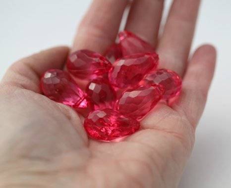 ACRYLIC - HOT PINK - FACETED - BRIOLETTE TEARDROP - BEADS - 25x15mm