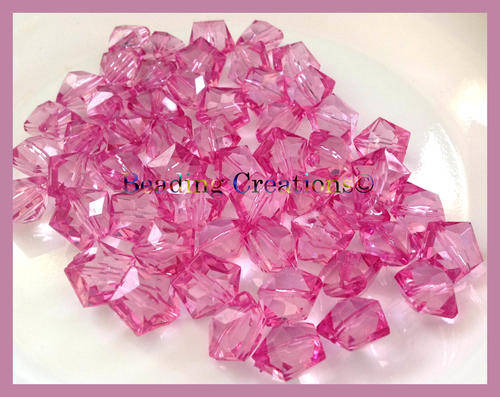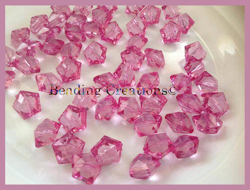 ACRYLIC - PINK - FACETED - PENTAGON - BEADS - 14x12mm
