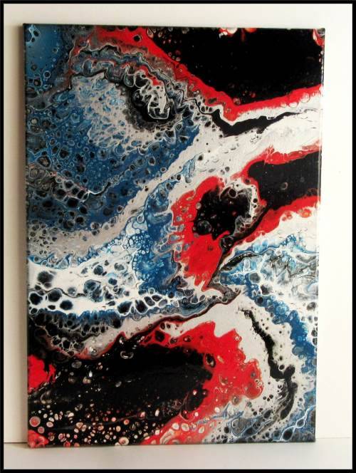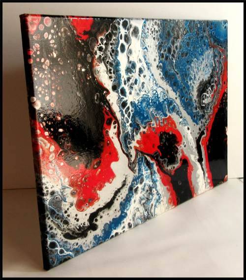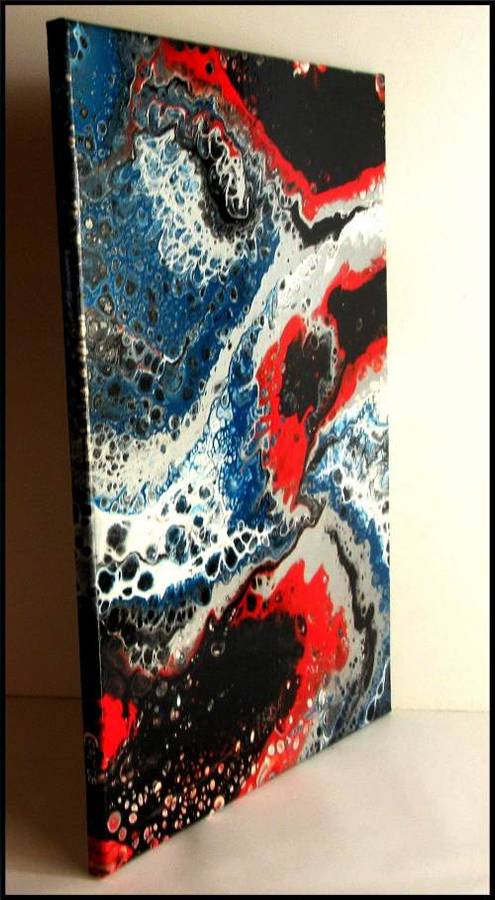 Acrylic pour paintings are abstract arts with no specific reality. No tools or brushes are used, fluid paint is poured directly onto the canvas to move around and blend. Every painting is unique and cannot be re-created. There is only one of a kind. All my paintings are original, most of my pours have a unique cell formation and some have a textured surface due to chemical reactions of the different paint mixes. It is natural to have paint overflow on the sides of the canvas of pour paintings. Paintings have a protective varnish coating.