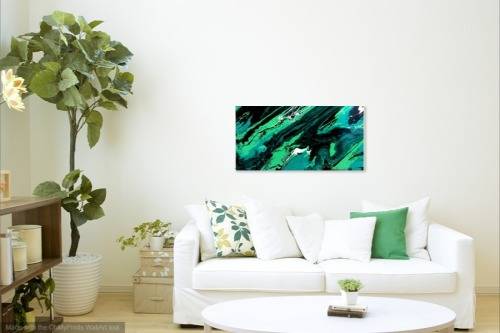Acrylic pour paintings are abstract arts with no specific reality.  No tools or brushes are used, fluid paint is poured directly onto the canvas to move around and blend.  Every painting is unique and cannot be re-created.   There is only one of a kind.   All my paintings are original,  some  of my pours have a unique cell formation and some have a textured surface due to chemical reactions of the different paint mixes.  It is natural to have paint overflow on the sides of the canvas of pour paintings.  Paintings have a protective varnish coating.