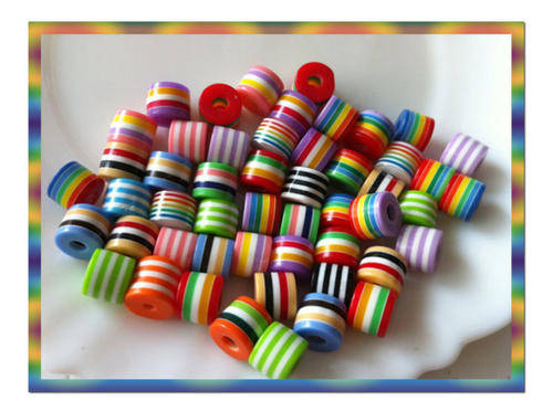 ACRYLIC - RESIN - ASSORTED RAINBOW COLORS - STRIPED COLUMN BEADS - 8mm - 10 PCS