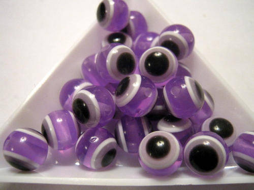 ACRYLIC - RESIN - PURPLE, BLACK AND WHITE - EVIL EYE - STRIPED ROUND BEADS - 8mm - 10 PCS