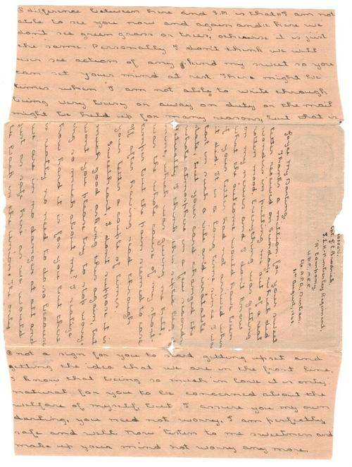 Active service letter by CPL JE Brodrick to girlfriend J Thompson - 31/8/1943