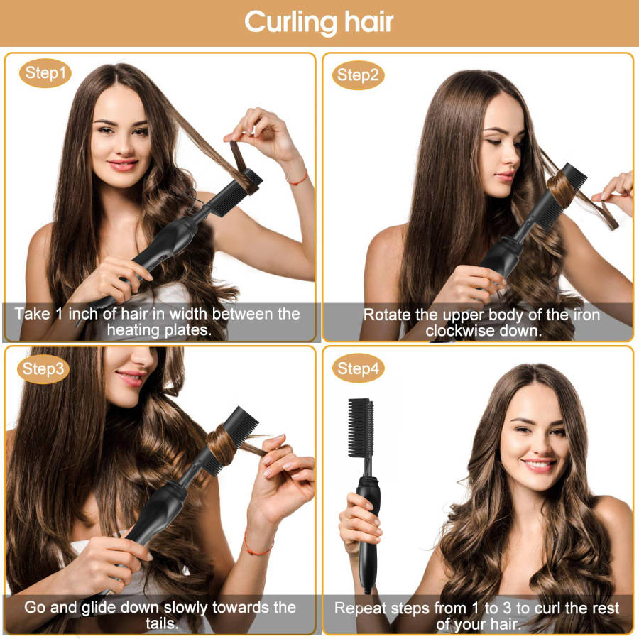 AD - 119 - 2 in 1 Electric Hair Straightener Hot Comb Hair Curler