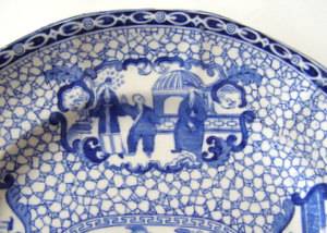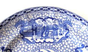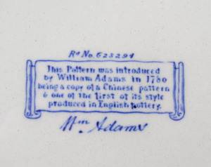 An Adams blue and white plate depicting Chinese scenes from a design created in 1780.