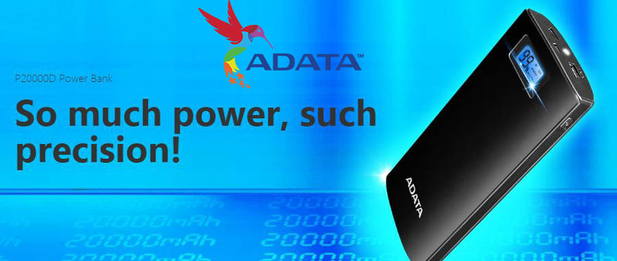 AData P20000D Power Bank 20000mAh Power Bank with digital display - Input: 5V/2A Micro-USB, Output: 2x USB Type-A 5V/2.1A, Digital Display, Aluminum Housing, Smart Circuit Design, LED Flashlight, Micro-USB Input - Black, Retail Box , 1 year Limited Warranty