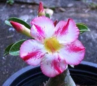 This stunning new hybrid is new to the market and we are pleased to be the first in South Africa to offer Adenium obesum Fragrant Delight Seeds. The 8-11cm in diameter blooms have white petals with pink edges, red streaks down the middle of the petals and yellow centers. Like all Adenium obesum hybrids they are profuse flowerer's and do so from as young as 9-12 months. The bid amount is for 1 Seed We'll supply you with all the germination & care instructions. To see our growing range of interesting plant seeds, please follow the link below. Thanks. |
