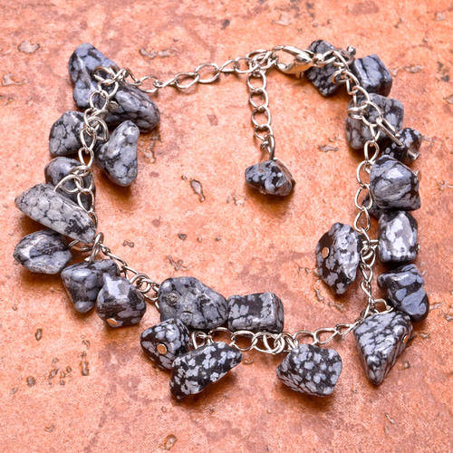 ADJUSTABLE 6 1/2" - 9" SNOWFLAKE OBSIDIAN GEMSTONE BRACELET