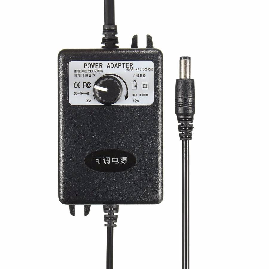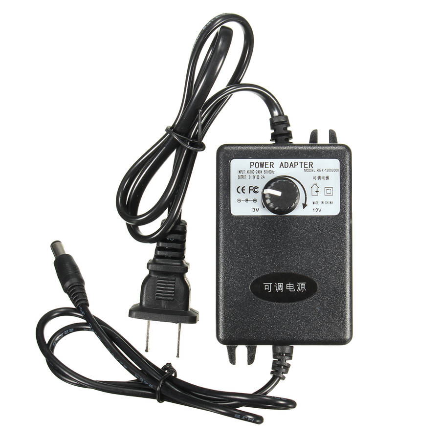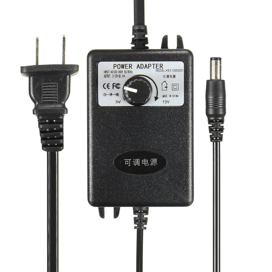 1. Input voltage: 100 - 240 VAC, 50 / 60Hz 2. Output voltage and current: 12V2A 3-12V adjustable 3. Interface:DC 5.5*2.1 4. Size:79*53*31mm 5. Power cable length:0.5m