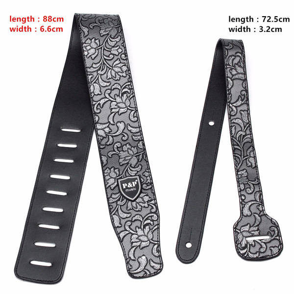 Adjustable Black PU Leather Thick Strap for Electric Acoustic Guitar Bass