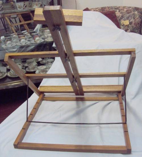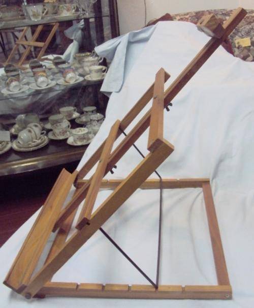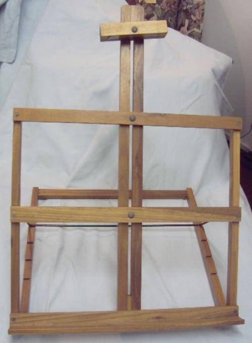 This ADJUSTABLE DESK TOP OR TABLE TOP OAK ARTIST'S EASEL comes complete, with a Ledge to place one's painting, adjustable height, and folds down flat, as a Space saver.