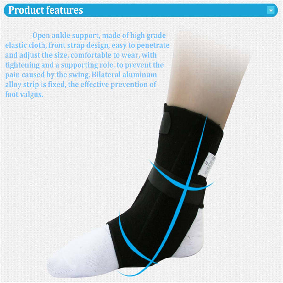 Package weight: 0.10 kg Features: 1. Made of high quality of OK fabric, magic stick buckle and aluminum alloy bar, it adopts open design and easy to use. 2. The aluminum alloy bar can prevent the harm to your ankle joint and also has a good fixation effect on your ligament and fracture. 3. 8 pattern bandage can be adjusted according to your needs. 4. You can wear this foot brace when you walk, jog or exercise to protect your foot from being hurt. Description: Color: Black Material: OK fabric, magic stick buckle, aluminum alloy bar Size: Suit for right and left foot Gender: Unisex Compatible: Fit for foot, day time and night time Package Included: 1 x Ankle Brace Note: Suitable shoe size: Asia shoe size:22.5-24.0 US shoe size:5.5-8.0 UK shoe size:4.5-7.5 EUR shoe size:36-42