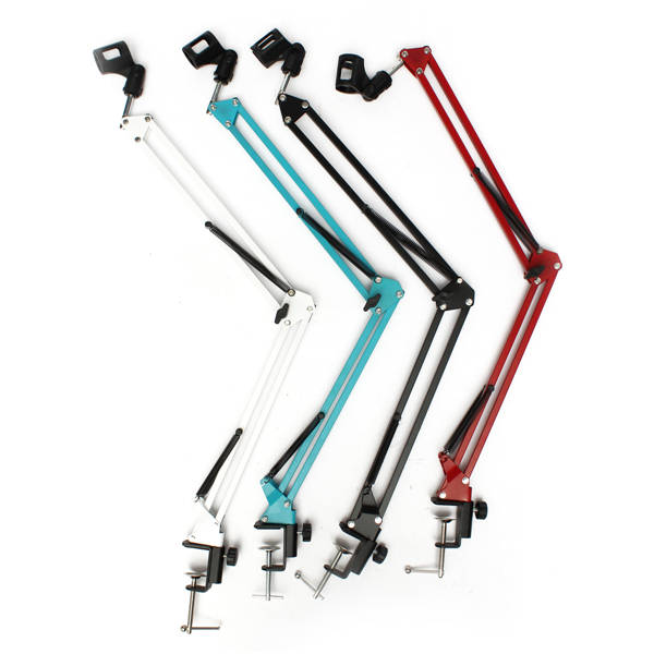 Desktop Mic Microphone Suspension Boom Scissor Arm Stand Mount Adjustable Specification: Color: Black, White, Blue, Red Material: Metal, Plastic Adjustable Clamp Maximum Width: 5cm/ 1.96" Height : approx. 84cm/ 33" Features: Convenient and useful invention widely used in stores, families, stages, studios, broadcasting and TV stations and so onCompact microphone stand designed for heavy duty carry Completely flexible, firmly attach the microphone anywhere Easy to suitable for all microphones Note: Please kindly state the specified color you like. Package Included: 1 x Microphone Suspension Arm
