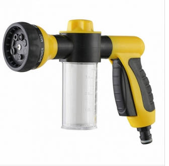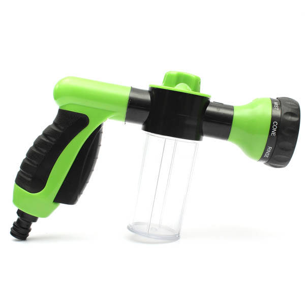 Multifunction Adjustbale Foaming Garden Watering Sprayer Sprayer includes 8 spray type: mist, cone, rinse, stream, shower, jet, center, flat. It can be put soap into foam container wachsing car or watered the garden plants.