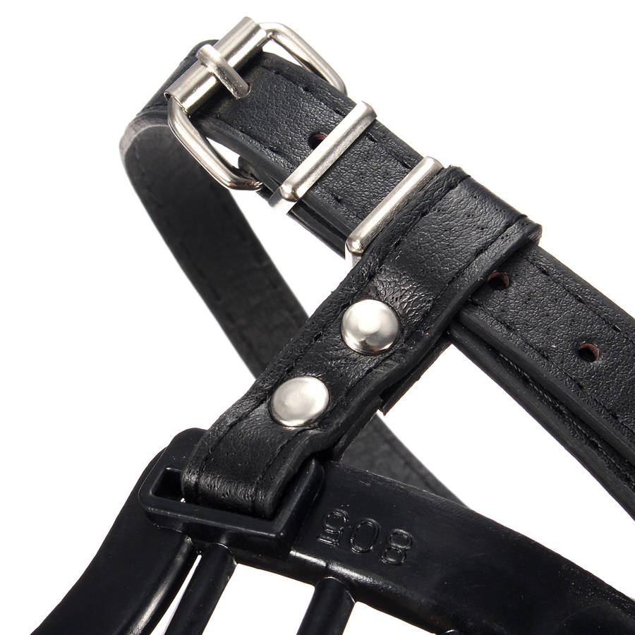 Features: a. Made of strong flexible plastic, includes comfort strip for the dog's snout b. Adjustable leather strap with quick release buckle and comfort strip for the dog's snout c. Lightweight muzzle features a basket design that gives all-around protection. d. A humane way to work with strong and forceful dogs. e. Helps stop biting, barking, and chewing dirty things. f. Allows unrestricted panting and drinking.