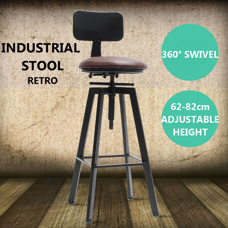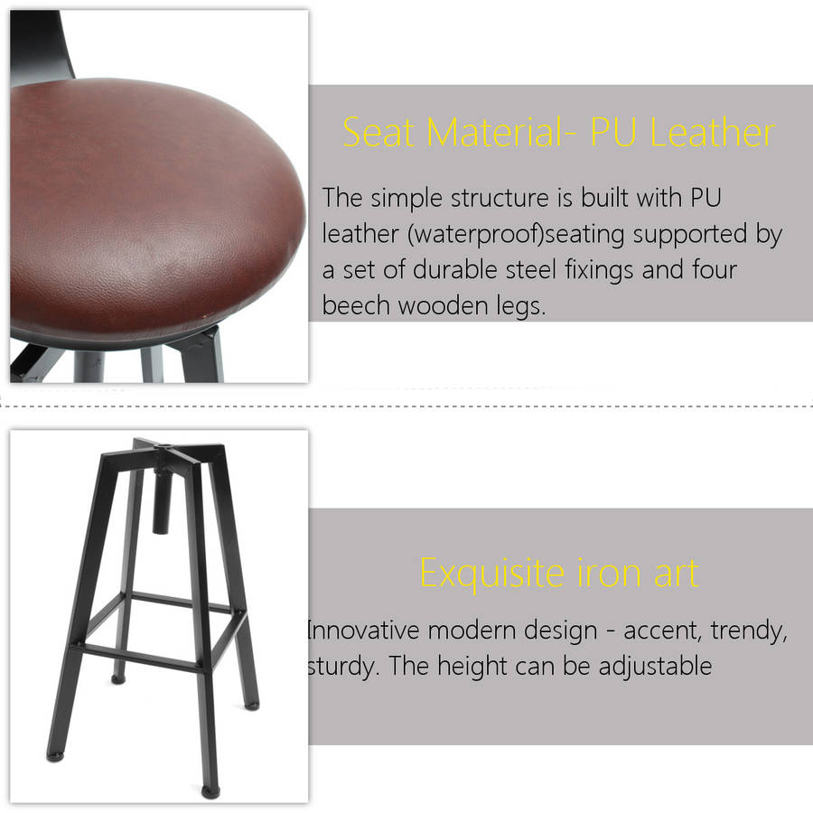 Adjustable Retro Bar Stool Metal Leather Craft Furniture Rotate Cafe Counter Ch Adjustable Retro Bar Stool Metal Leather Craft Furniture Rotate Cafe Counter Ch