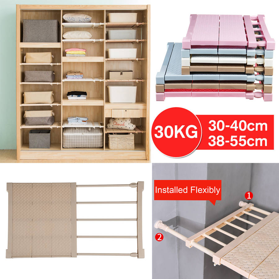 Adjustable Wardrobe Closet Organizer Storage Shelf Rack Wall Mounted S... (SIZE 3: L | COLOR1: BLUE)