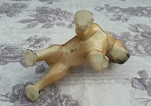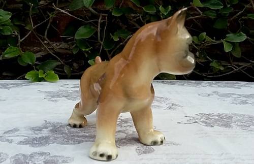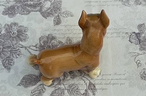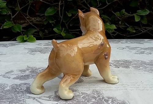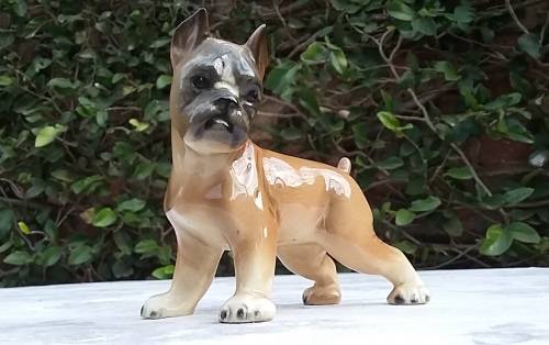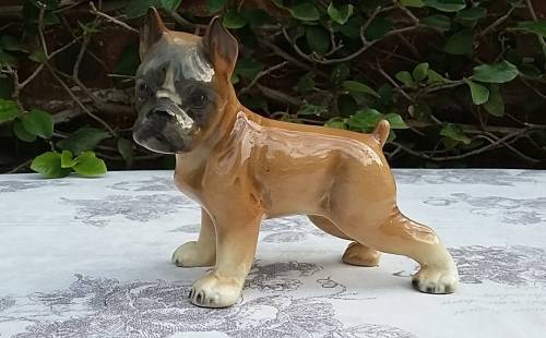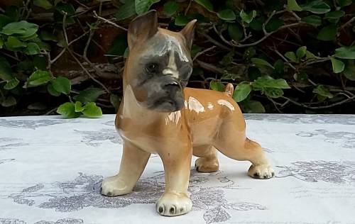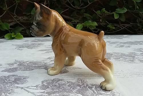 Unmarked Vintage Porcelain Figure of a Boxer Dog measuring approx. 150mm x 150mm. What looks like some minor glaze residue on the one side from firing otherwise lovely condition with serious character, no chips or scratches.