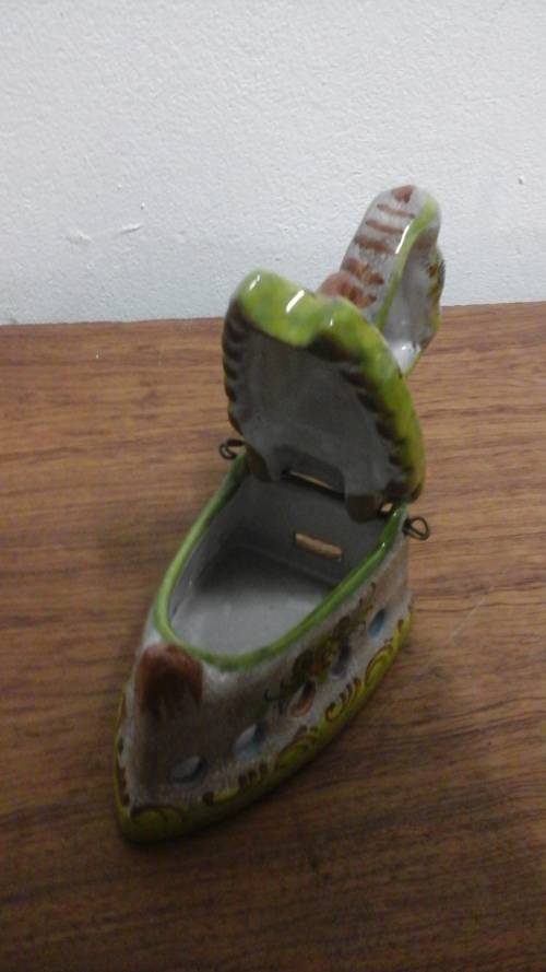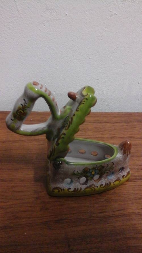 THIS STUNNING PIECE IS POSSIBLY MADE FROM PORCELAIN/ CERAMIC AND IS SHAPED TO LOOK LIKE AND IRON.
