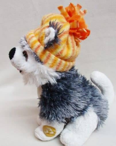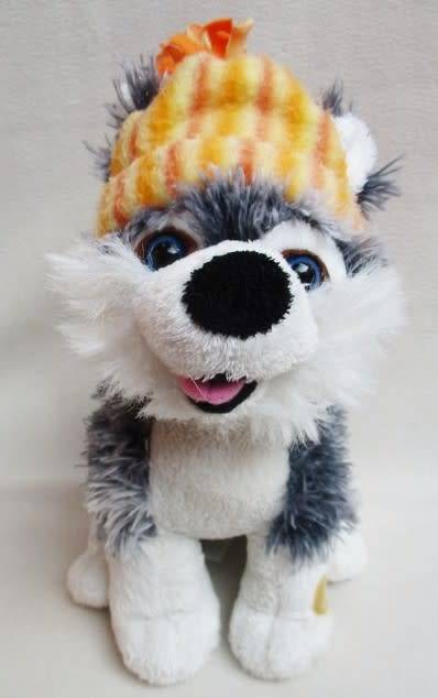 21CM TALL IN SITTING POSITION AND IN VERY GOOD CONDITION - PRESS THE MUSICAL NOTE ON HIS LEG AND HE BARKS BUT ONLY SPORADICALLY SO NOT SURE IF IT WILL WORK FOR LONG. NONETHELESS, HE'S SUCH A CUTE PUP. REFER IMAGES