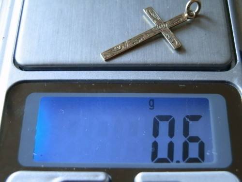 Adorable vintage solid 9 ct gold cross pendant - weight 0.6 g.