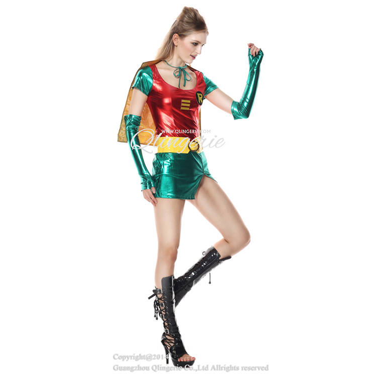 This Sexy Adult Robin Costume includes the superhero costume dress, cape, eye mask, belt and the glovelets.