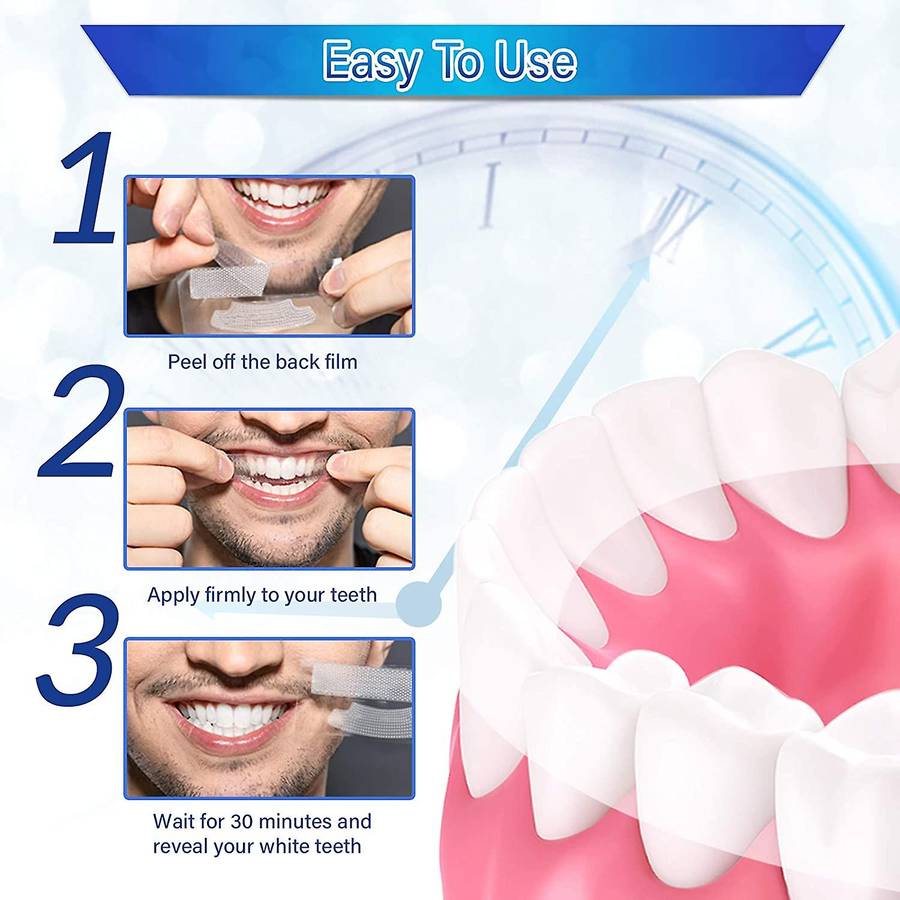 Introducing our new and improved Advanced Teeth Whitening Strips! These strips have a refreshing mint flavor and a gentle texture, making them the perfect solution for removing plaque, tartar, and dental stains with ease and effectiveness.