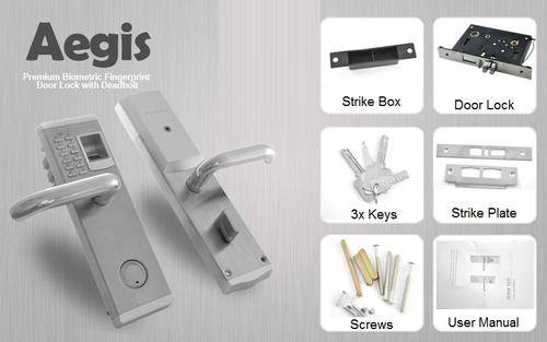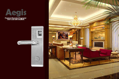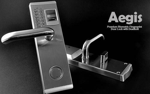 The new ultimate solution in business and home security, the Aegis Premium Fingerprint Door Lock. This biometric door lock with deadbolt features 3 forms of entry (fingerprint, access code, and key) for when only the highest quality in door entry security is acceptable.
