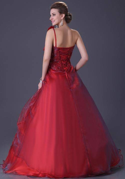 TECHNICS: dress has Lase up back, HAND BEADED DECO, FLOWER DECO